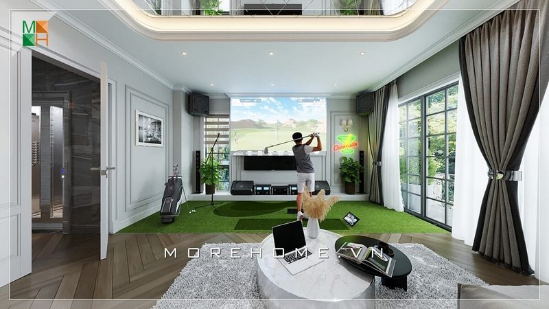 Thiết kế phòng làm việc kết hợp cùng không gian thư giãn, giải tỏa của biệt thự đầy sáng tạo và cao cấp.