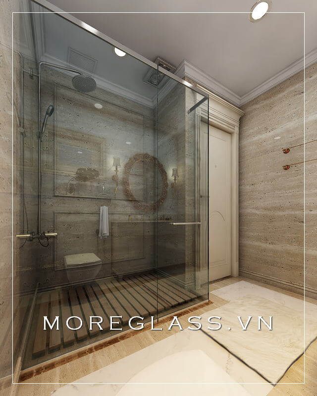 Mẫu phòng tắm kính đẹp được trang bị bằng những vật dụng đơn giản nhưng lại mang đến sự thoải mái, gọn gàng và tiện nghi.