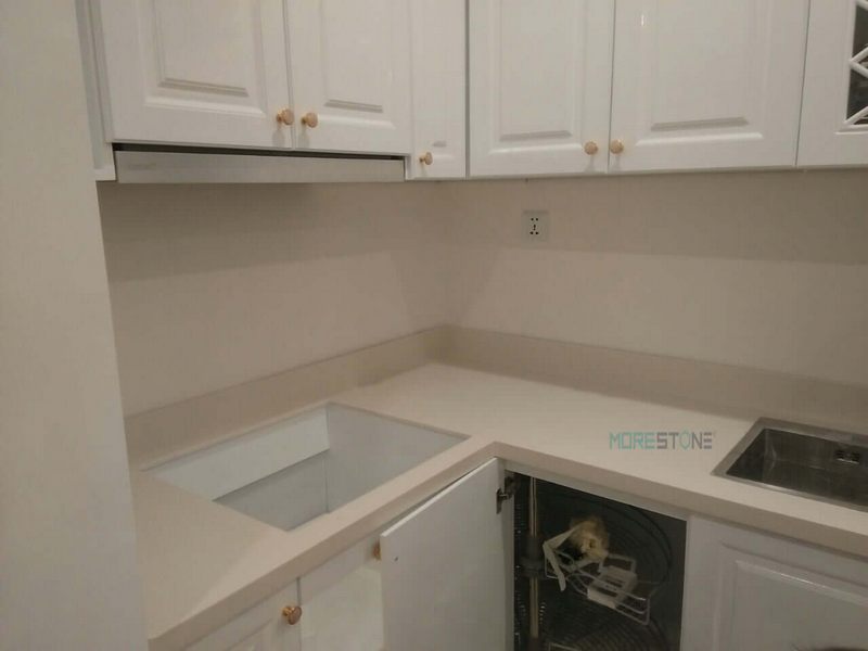 Mẫu đá ốp bếp Himacs trắng tinh tế làm cho bếp nhà phố, chung cư, biệt thự trở nên sang trọng hơn.